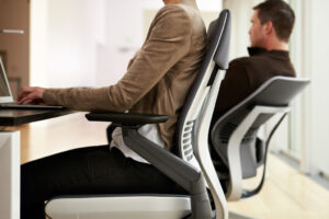 - Las sillas más recomendadas para trabajar o estudiar son aquellas con respaldo alto, soporte lumbar y descansabrazos, se aconseja no permanecer sentado por más de dos horas, si las actividades son de jornada larga es preferible levantarse cada cuarenta y cinco minutos y caminar un poco con cualquier pretexto.